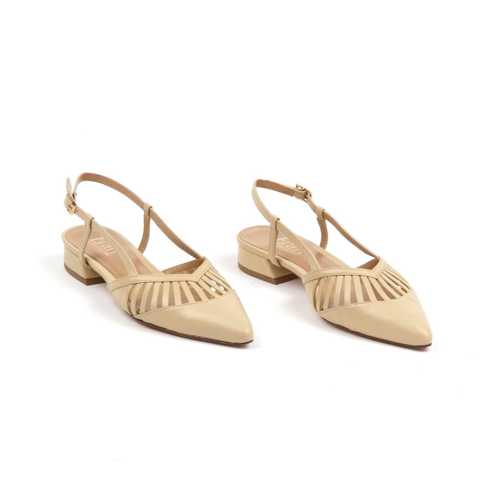 Γόβες δερμάτινες flat slingback σε μπεζ