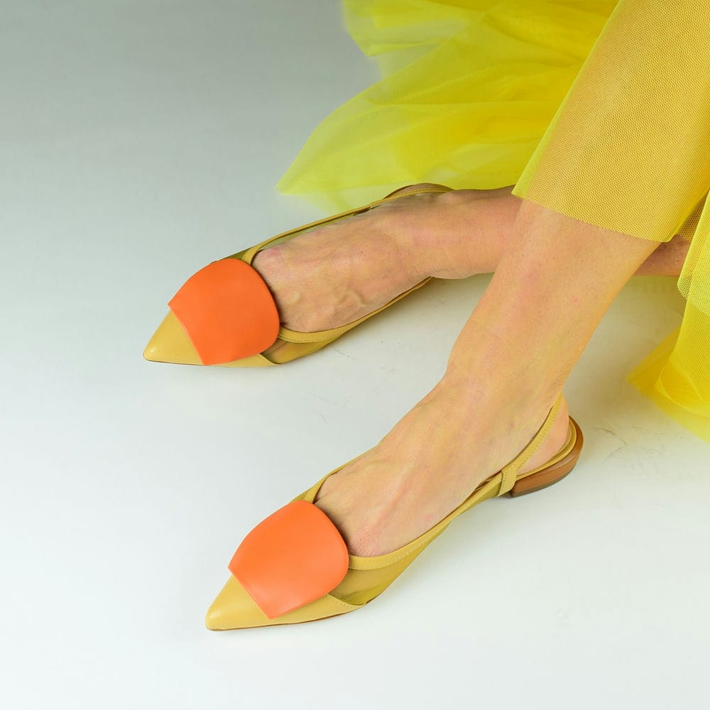 Γόβες slingback flat δερμάτινες φιλτιρέ σε μπεζ με πορτοκαλί αγκράφα