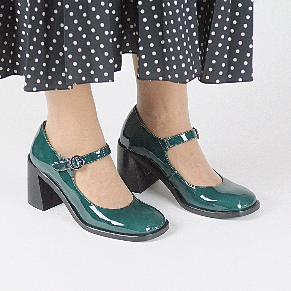 Γόβες Mary Jane δερμάτινες λουστρίνι σε πράσινο πετρόλ με τακούνι 6,5 cm