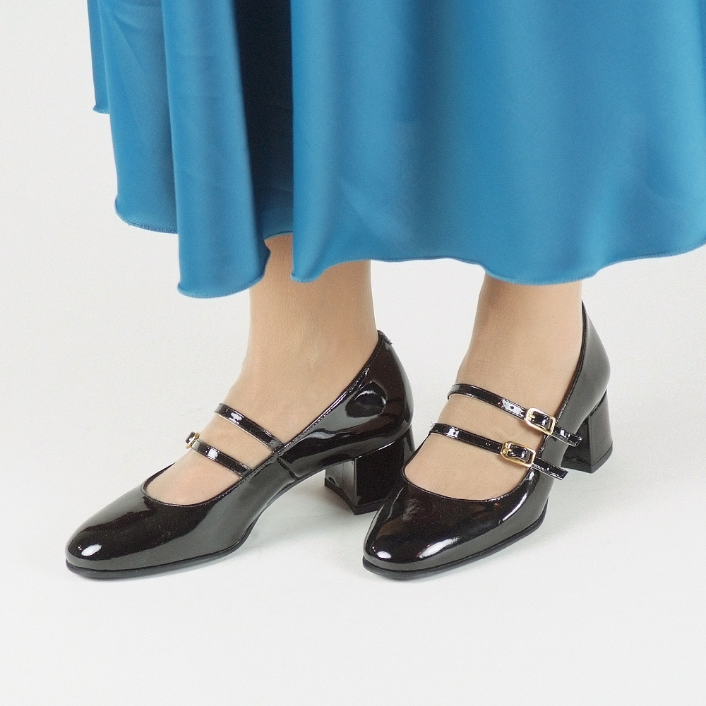 Γόβες Mary Jane δερμάτινες λουστρίνι σε μαύρο με τακούνι 4,5 cm