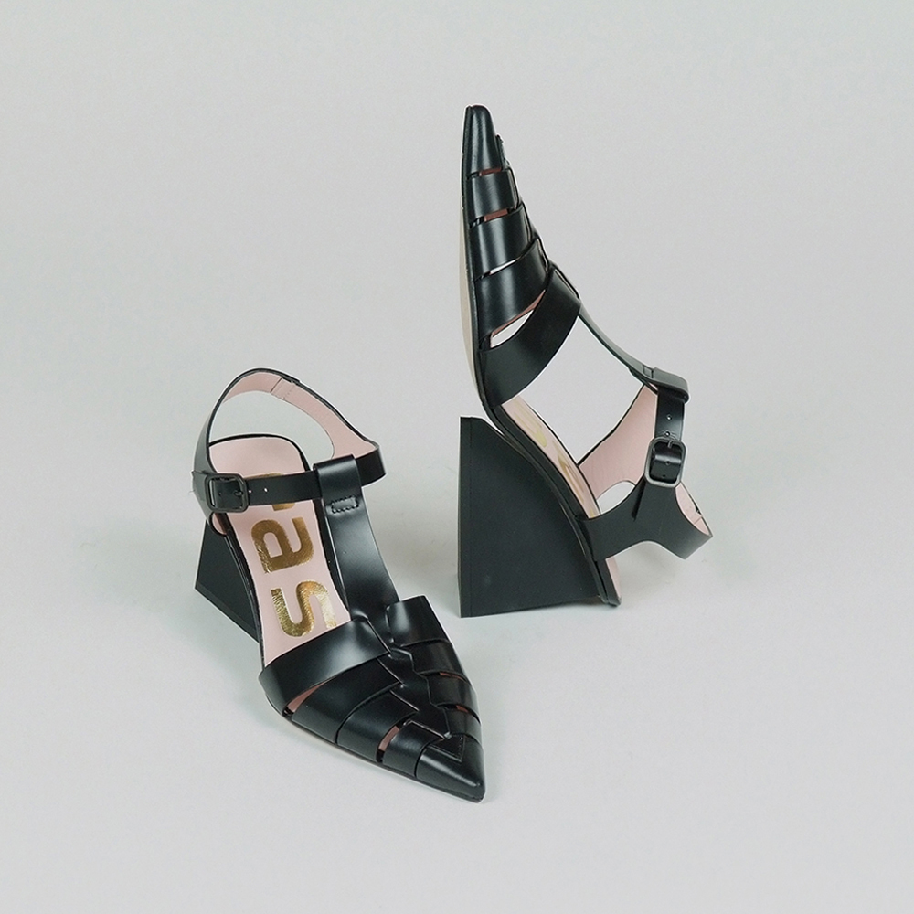 Γόβες δερμάτινεςT /BAR Fisherman slingback σε μαύρο με  τακούνι 6 cm