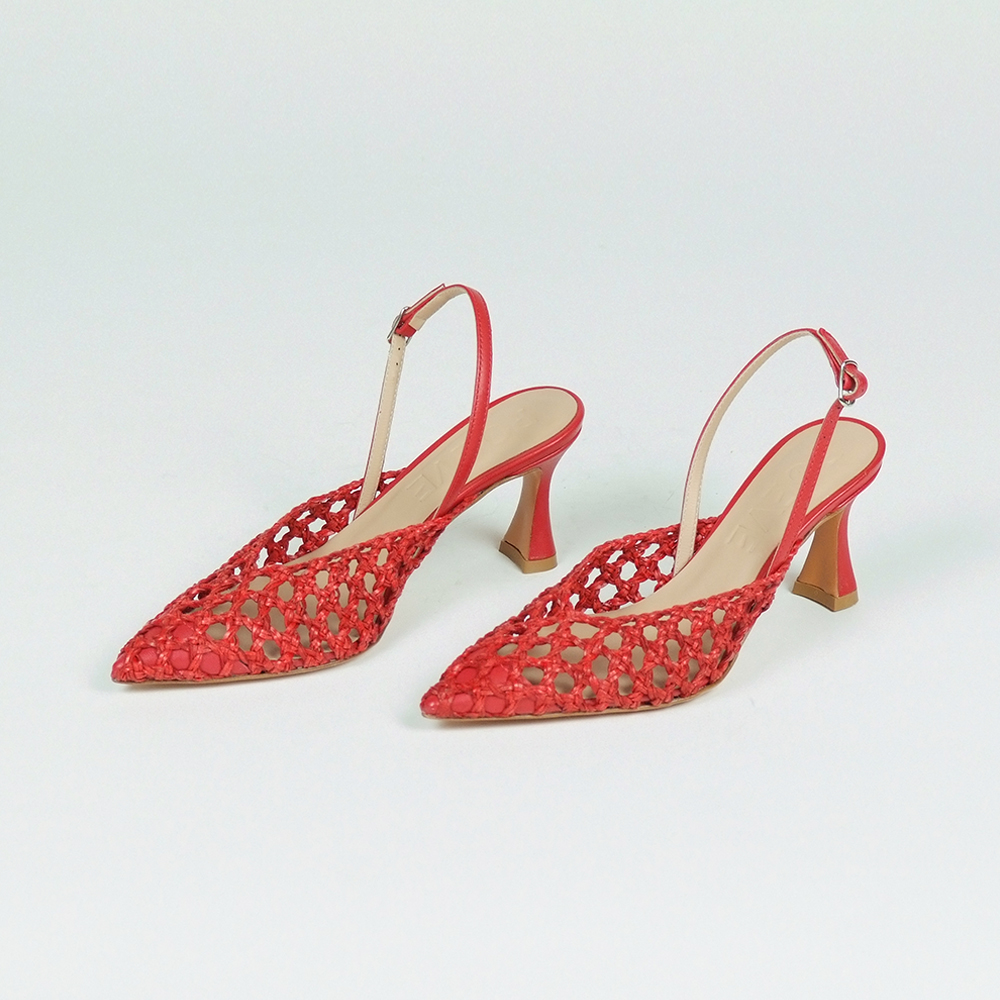Γόβες δερμάτινες slingback πλεκτές σε κόκκινο με τακούνι 6,5 cm