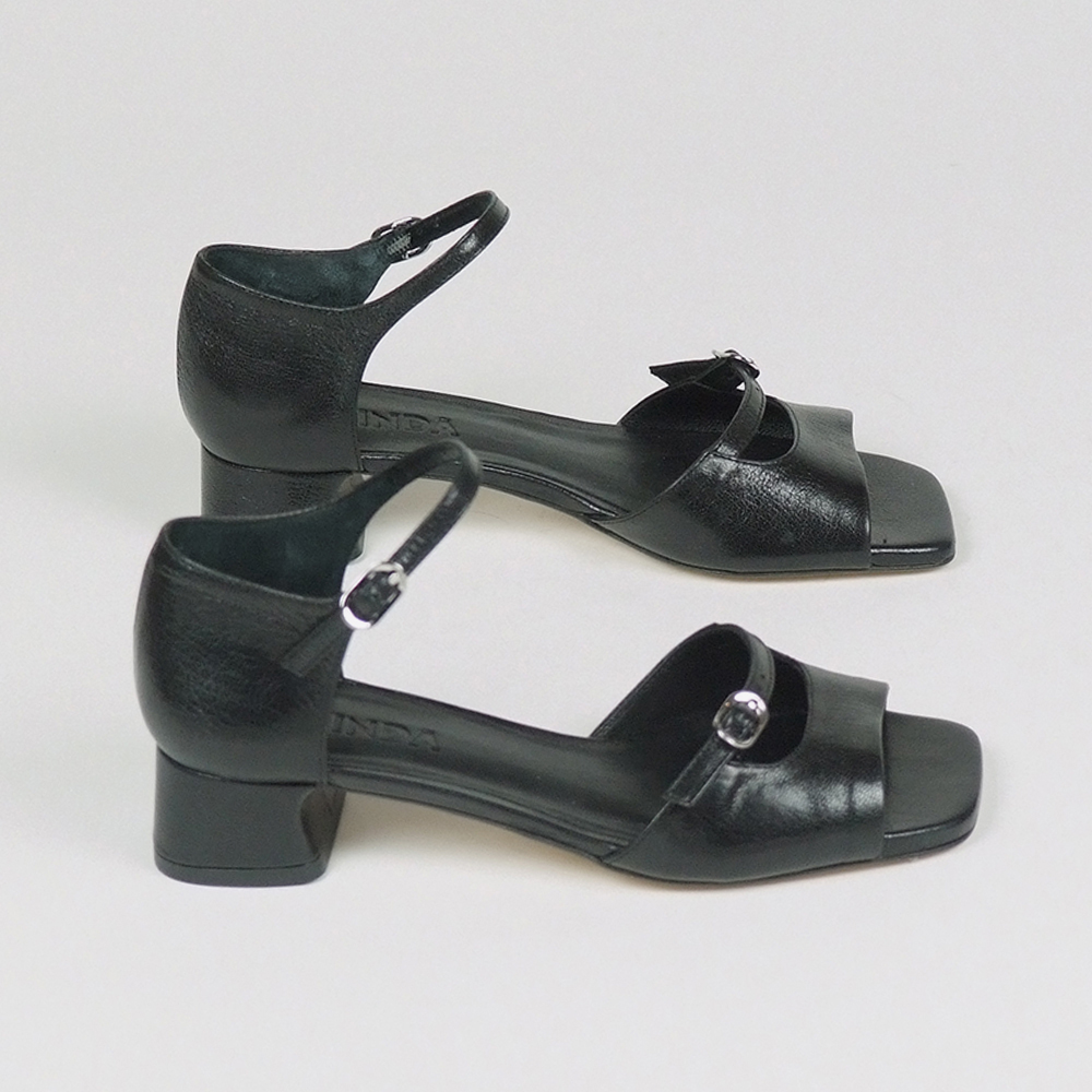 Γόβες δερμάτινες με μπαρέτα σε μαύρο και τακούνι 4 cm