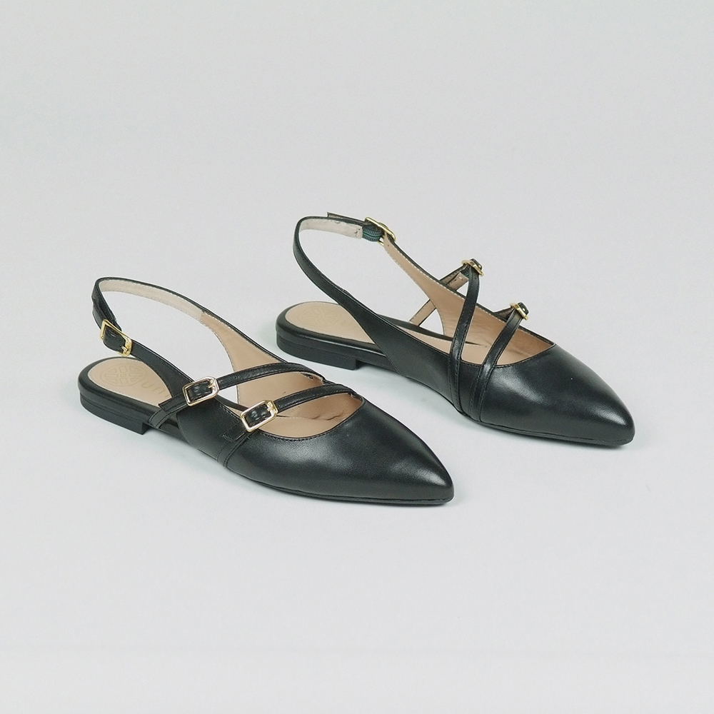 Γόβες δερμάτινες φλάτ slingback σε μαύρο