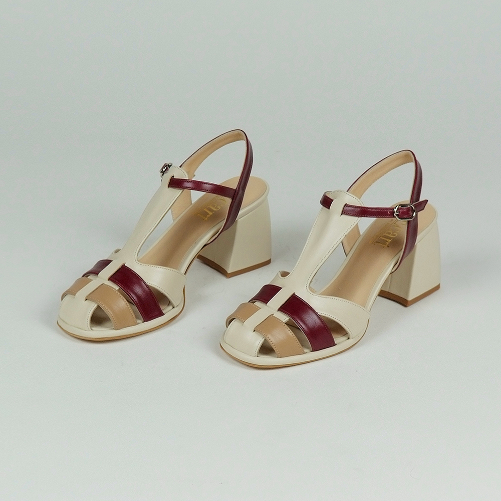 Γόβες δερμάτινες T/BAR Fisherman σε μπέζ-καφέ-σκούρο- μπέζ τριχρωμία με 6 cm τακούνι