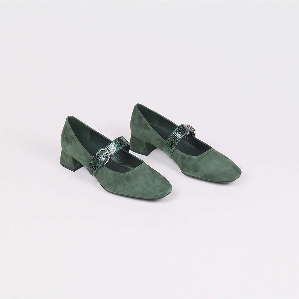Γόβρς Mary Jane δερμάτινες καστόρινες σε πράσινο με τακούνι 3,5 cm.