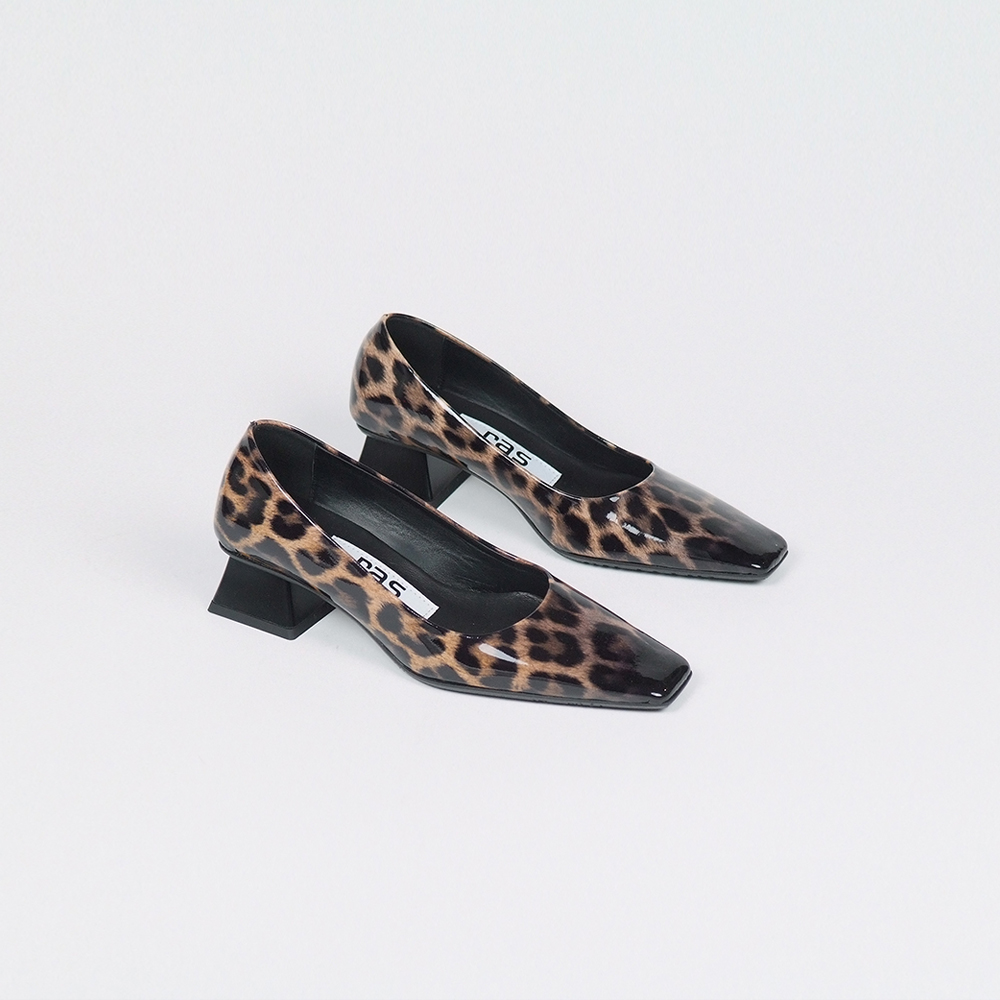 Γόβες δερμάτινες τύπου animal print σε λουστρίνι με τακούνι 4cm.