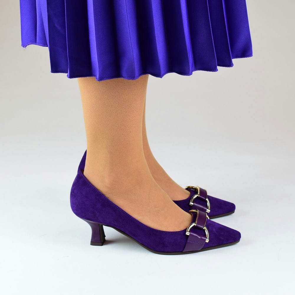 Γόβες δερμάτινες καστόρινες σε μωβ με τακούνι 5,5 cm