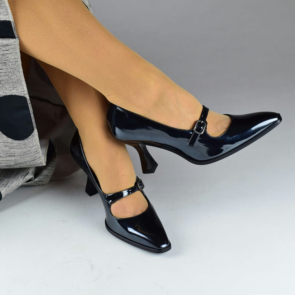 Γόβες δερμάτινες λουστρίνι σε μαύρο με τακούνι 7,5 cm