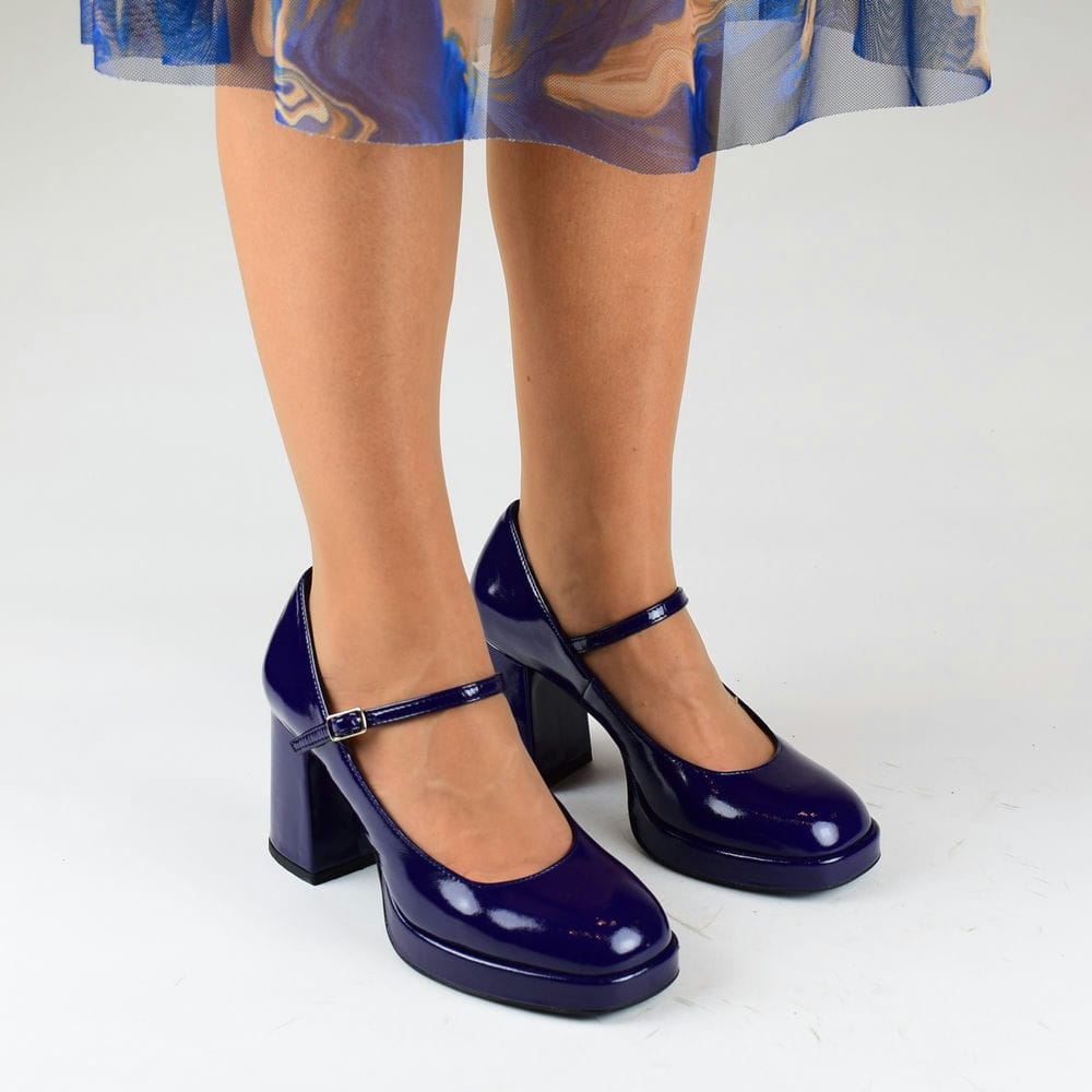 Γόβες δερμάτινες Mary Jane σε λουστρίνι μωβ με τακούνι 7,5 cm πλατφόρμα 1,5 cm