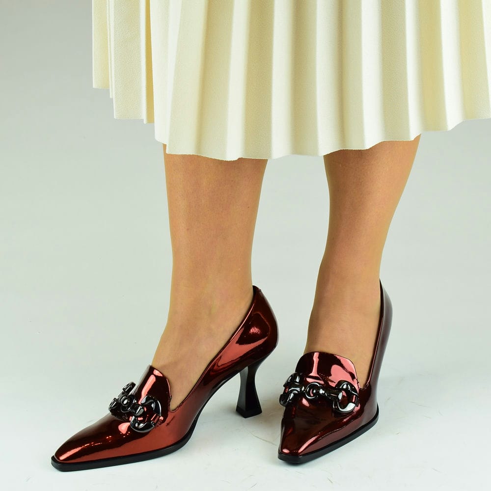 Γόβες δερμάτινες σε μπορντό με τακούνι 7,5 cm