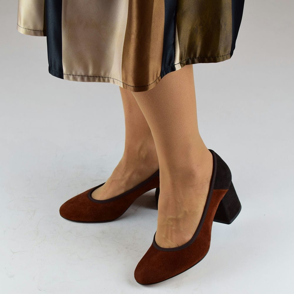 Γόβες δερμάτινες καστόρινες σε καφέ με τακούνι 4,5 cm