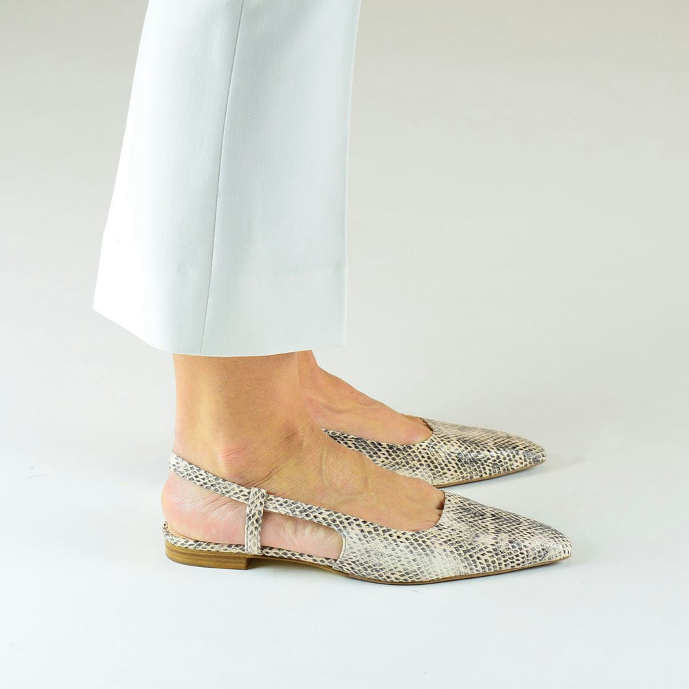 Γόβες flat δερμάτινες slingback σε γκρι μπεζ