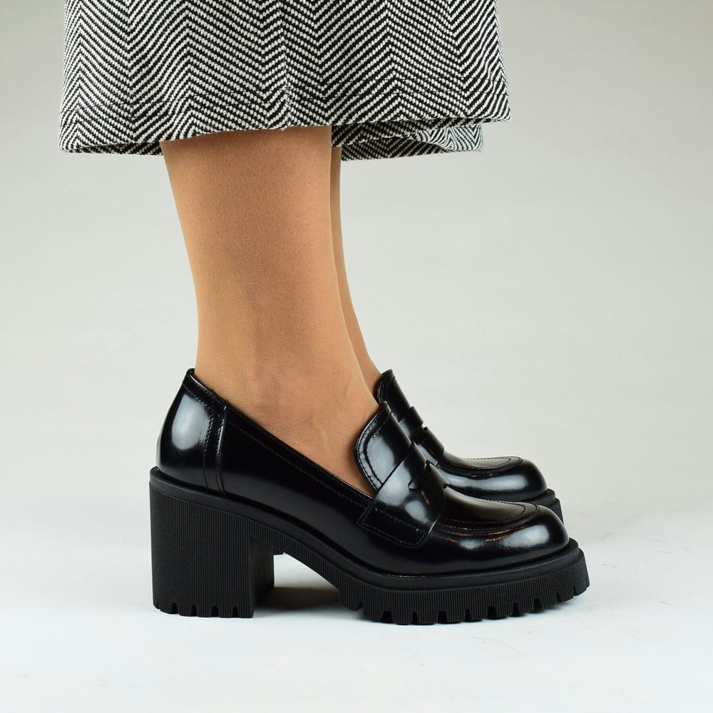 Μοκασίνια δερμάτινα extra light σε μαύρο με τακούνι 5,5 cm