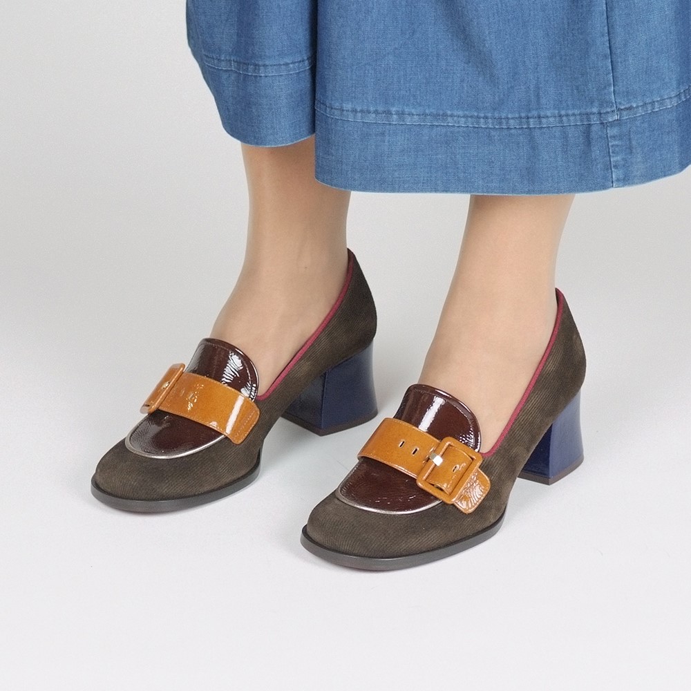 Μοκασίνια δερμάτινα πολύχρωμα καστόρινα με τακούνι 4,5 cm