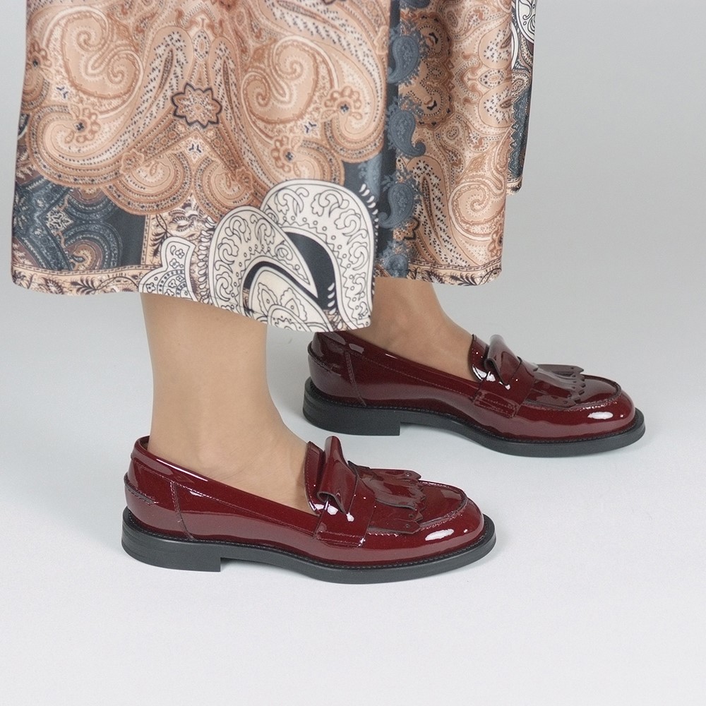 Μοκασίνια λουστρινένια δερμάτινα με ελαστική rubber σε μπορντό