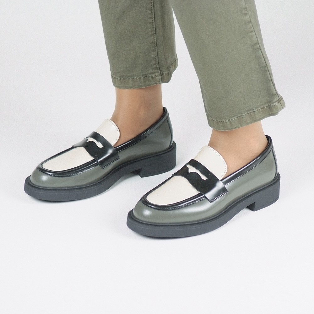 Μοκασίνια δερμάτινα με rubber σόλα σε πολυχρωμία γκρι off white μαύρο