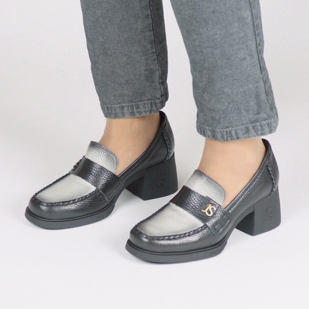Μοκασίνια δερμάτινα σε μαύρο off white με τακούνι 5 cm