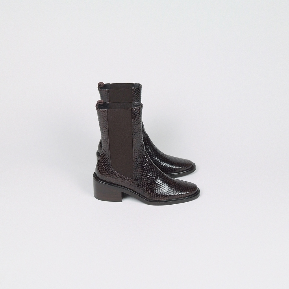 Μποτάκια Chelsea δερμάτινα κροκό effect με φερμουάρ και τακούνι 4,5cm.