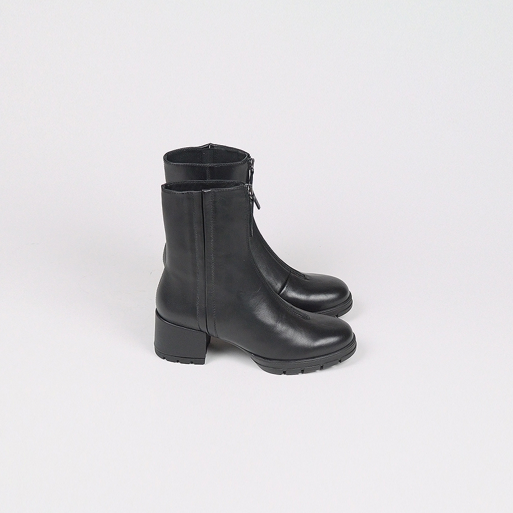 Μποτάκια δερμάτινα σε μαύρο με φερμουάρ καο σόλα ελαστική με τακούνι 5cm.