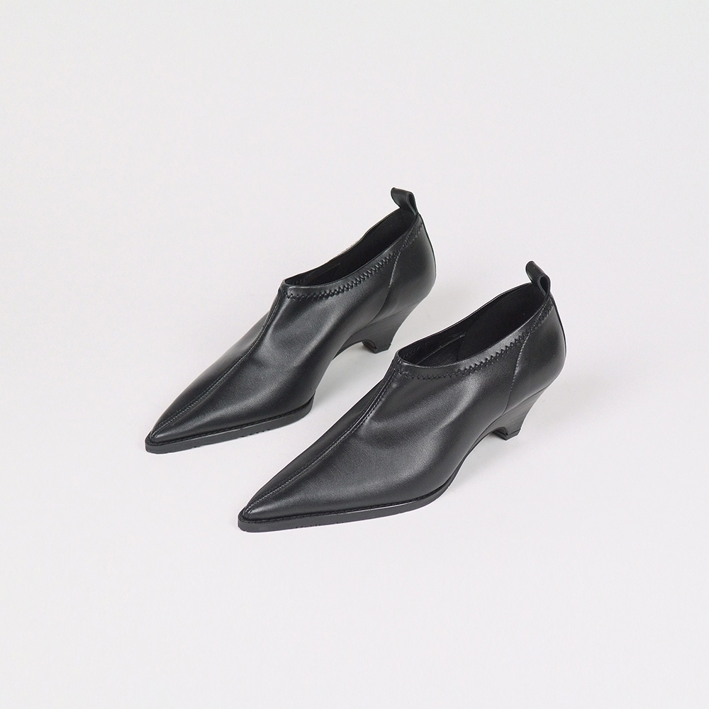 Μποτάκια Ankle δερμάτινα σε μαύρο με τακούνι 4 cm.