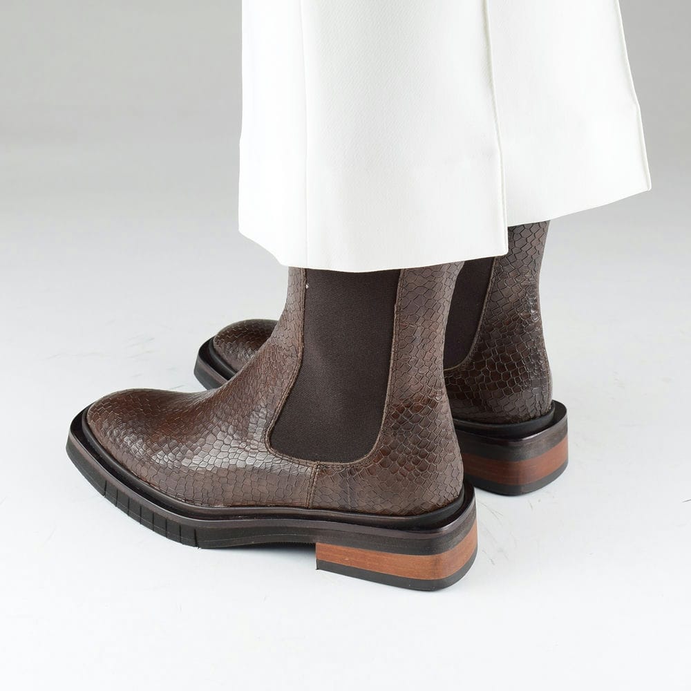 Μποτάκια chelsea δερμάτινα κροκό σε καφέ