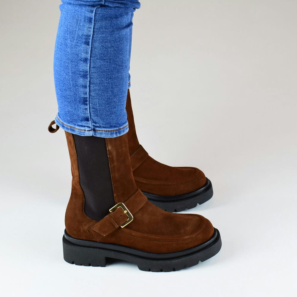 Μποτάκια δερμάτινα καστόρινα σε καφέ