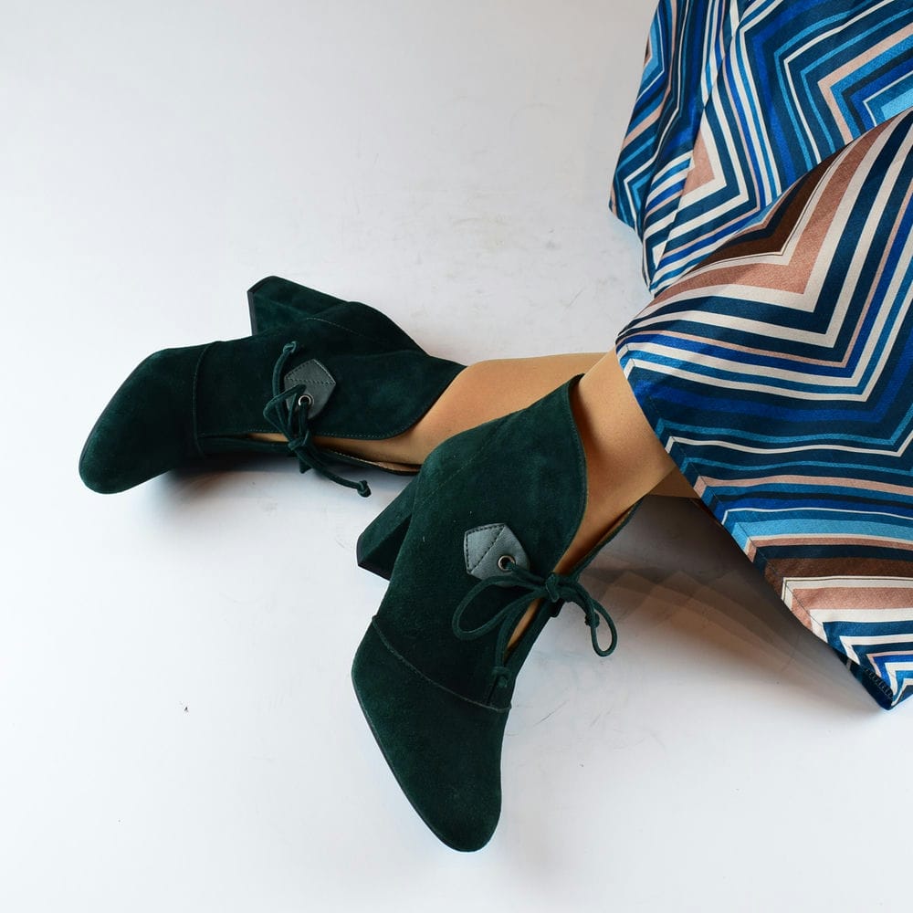 Μποτάκια δερμάτινα καστόρινα δετά σε πράσινο με τακούνι 6 cm