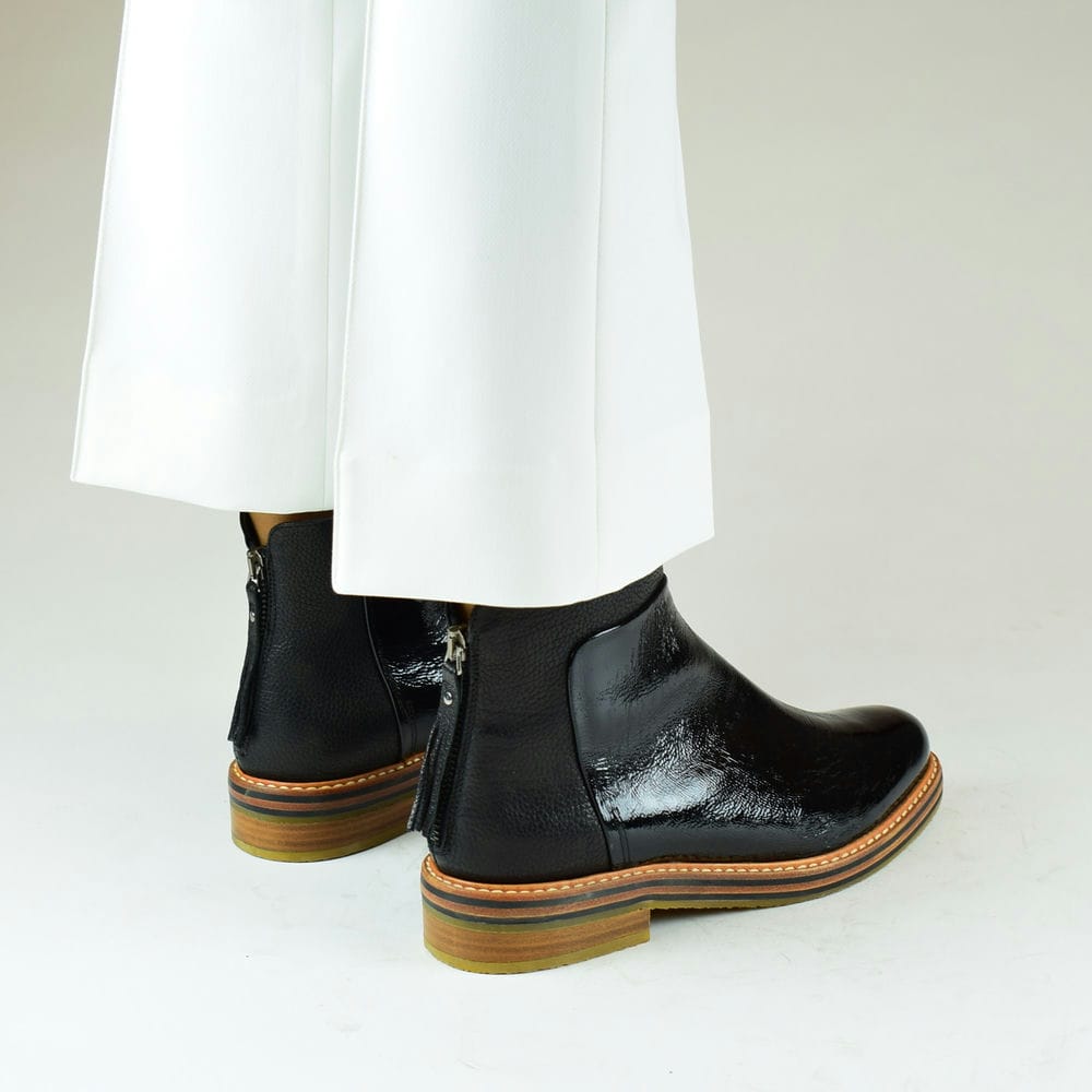Μποτάκια δερμάτινα σε μαύρο με φερμουάρ πίσω και σόλα ελαστική