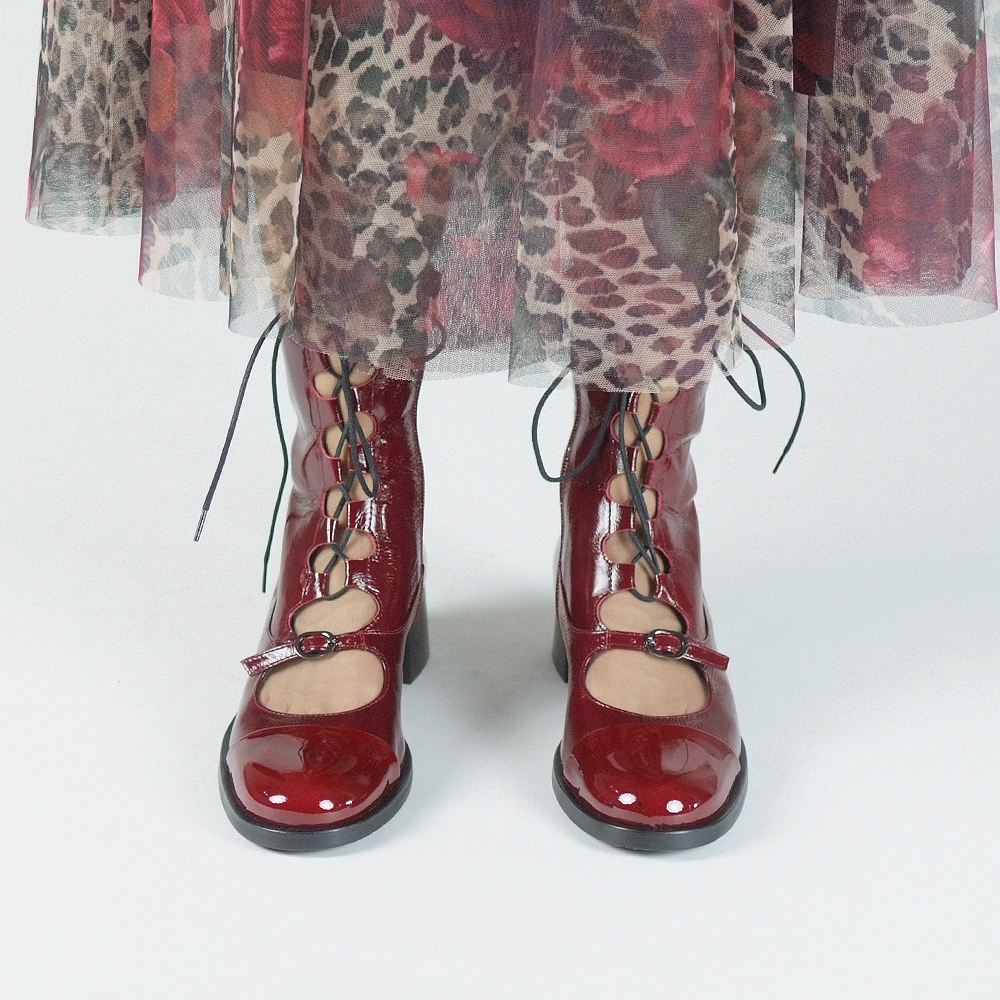 Μποτάκια δερμάτινα σε μπορντό με κορδόνια και φερμουάρ εσωτερικά με τακούνι 5 cm