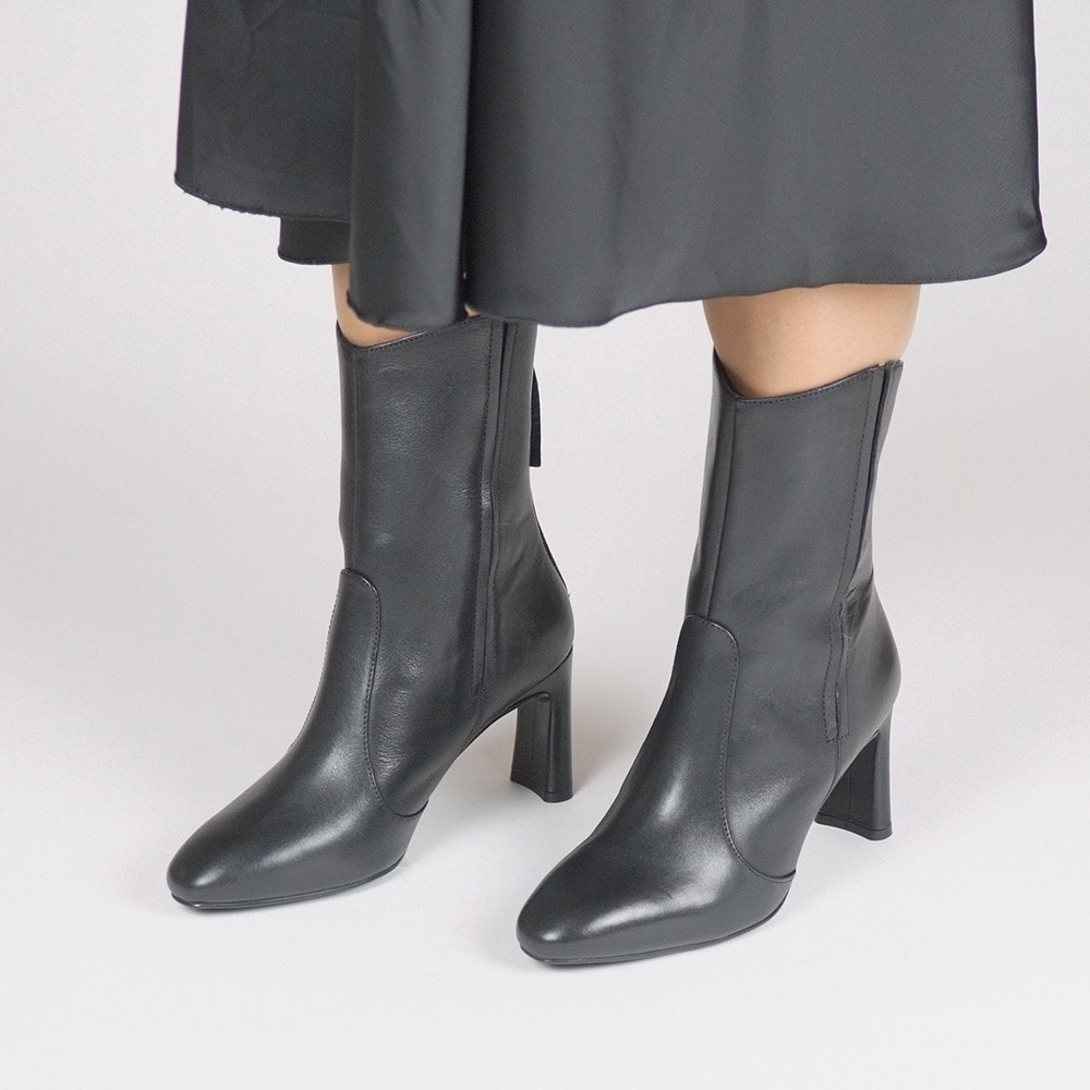 Μποτάκια δερμάτινα σε μαύρο με φερμουάρ πίσω και τακούνι 6,5 cm