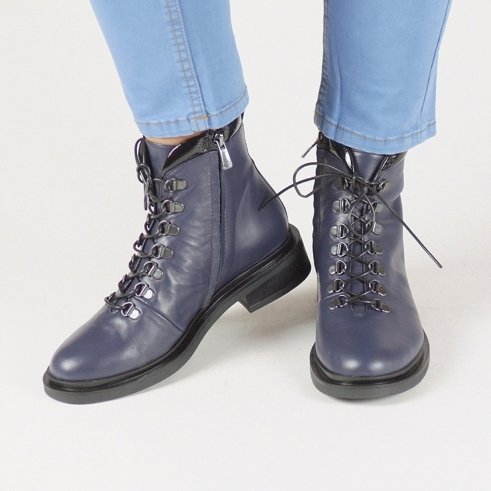 Μποτάκια δερμάτινα με φερμουάρ εσωτερικά σε μπλέ μεταλλικό