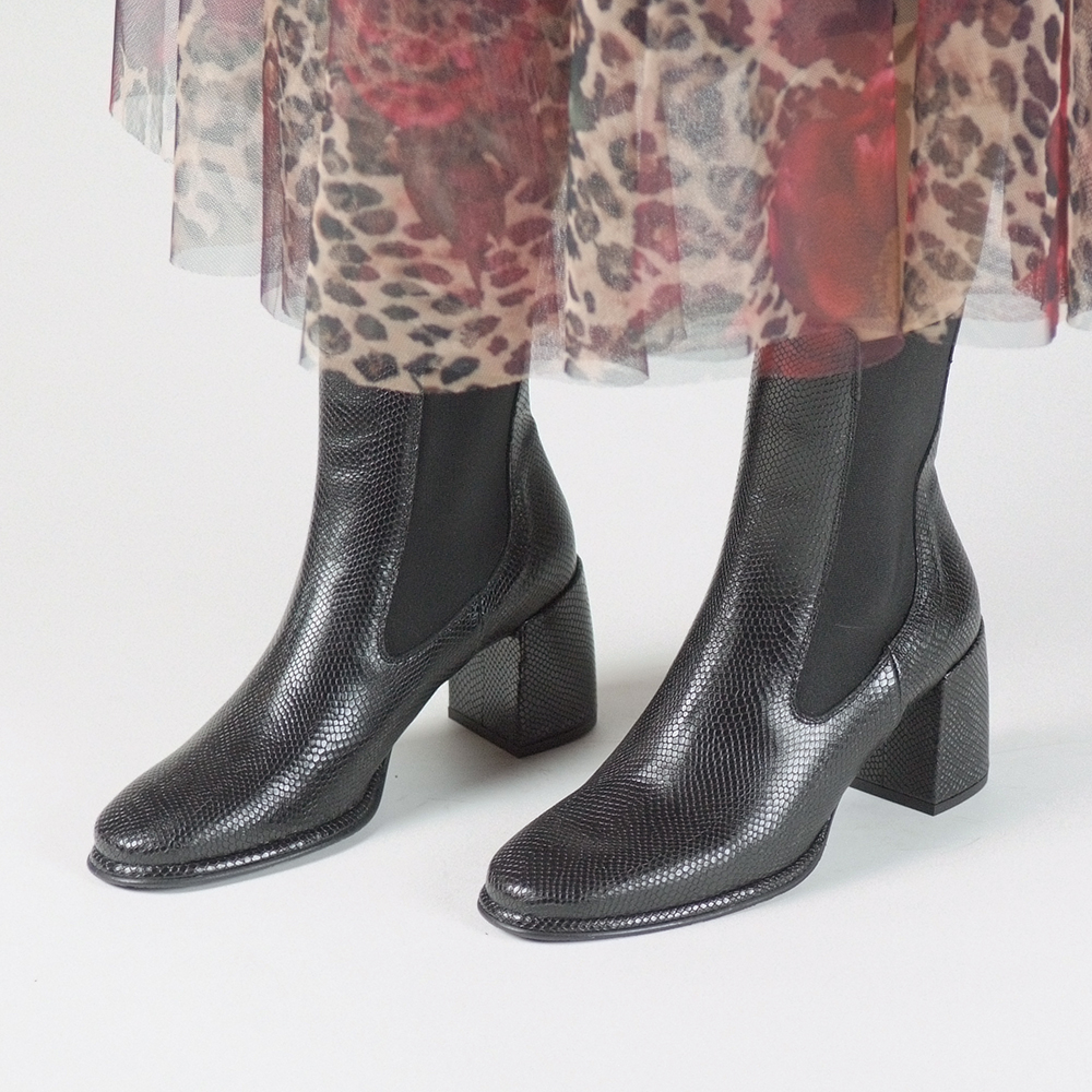 Μποτάκια chelsea από δέρμα τύπου φιδιού σε μαύρο με τακούνι 6 cm