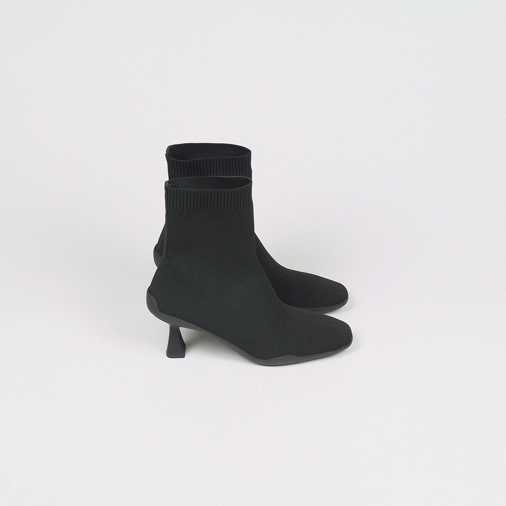 Μποτάκια από ελαστική κάλτσα σε μαύρο με τακούνι 6,5cm.