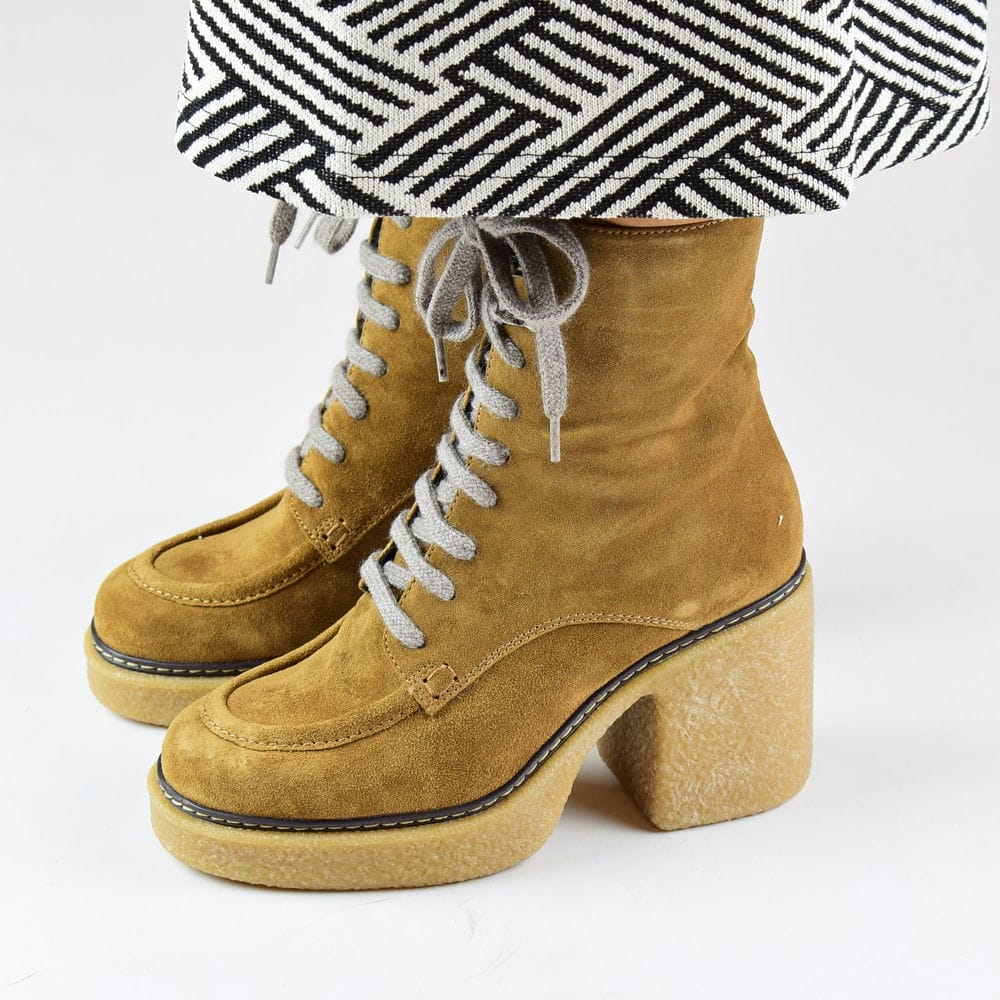 Μποτάκια δερμάτινα καστόρινα σε μπεζ με τακούνι 6 cm