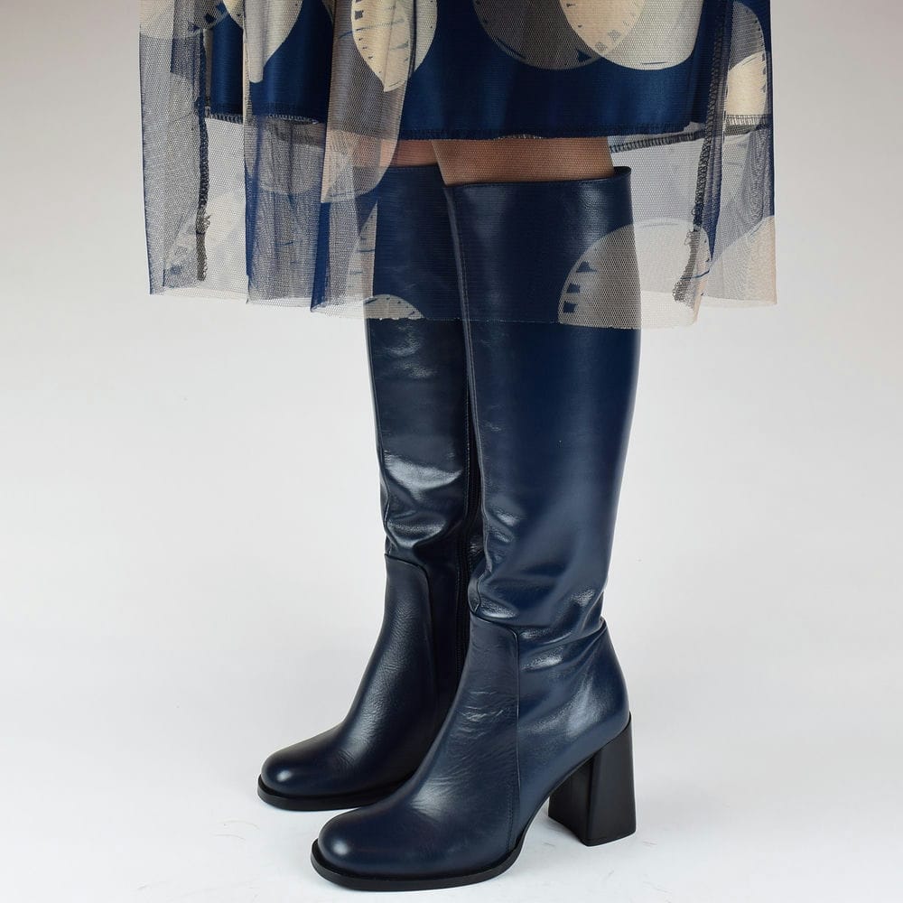Μπότες δερμάτινες σε μπλε με τακούνι 7,5 cm