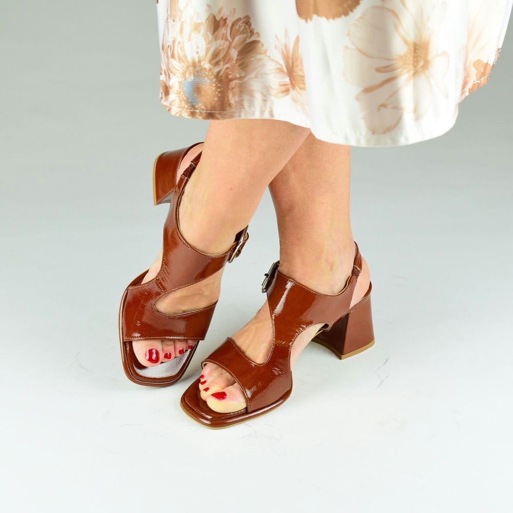 Πέδιλα δερμάτινα σε ταμπά λουστρίνι με τακούνι 5 cm