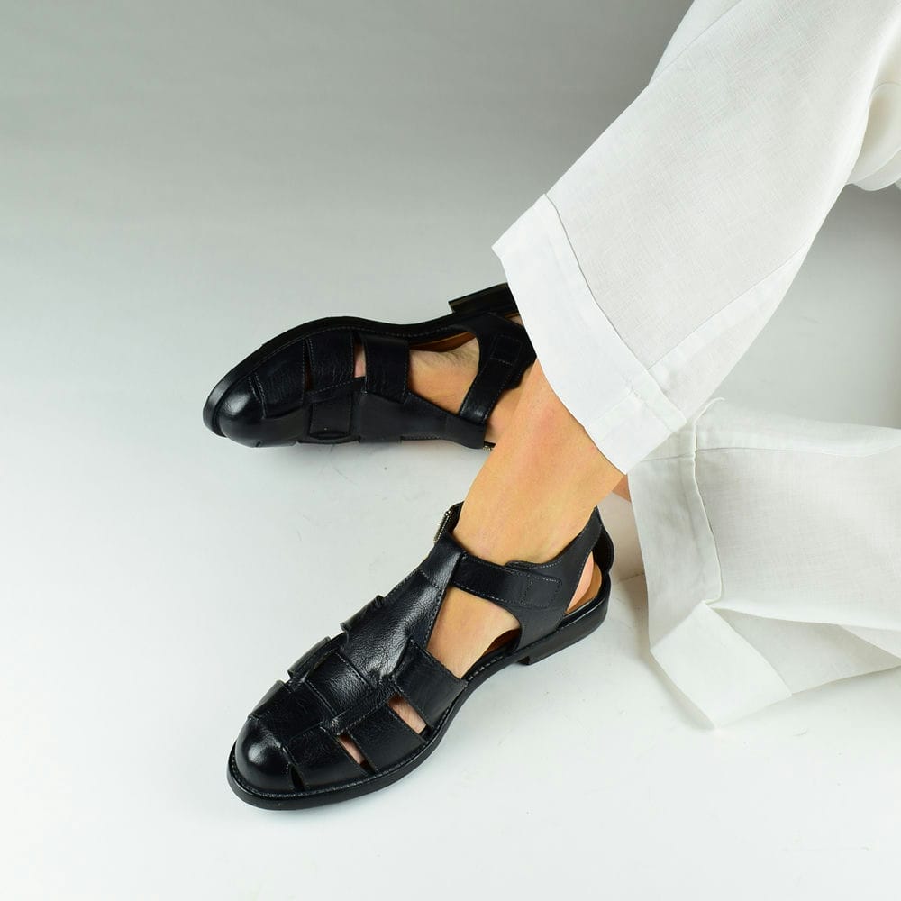 Πέδιλα fisherman δερμάτινα χειροποίητα σε μαύρο