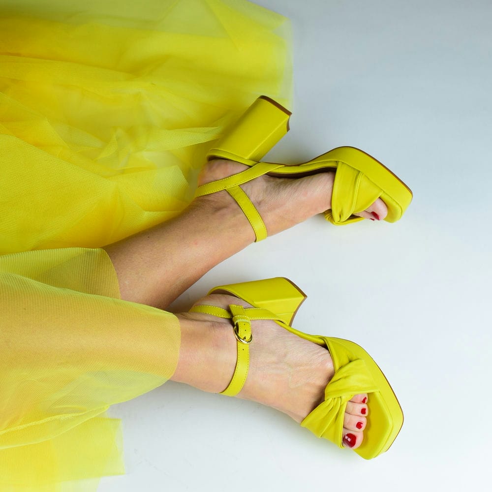 Πέδιλα δερμάτινα σε κιτρινο με τακούνι 8,5 cm και πλατφόρμα 2,5 cm