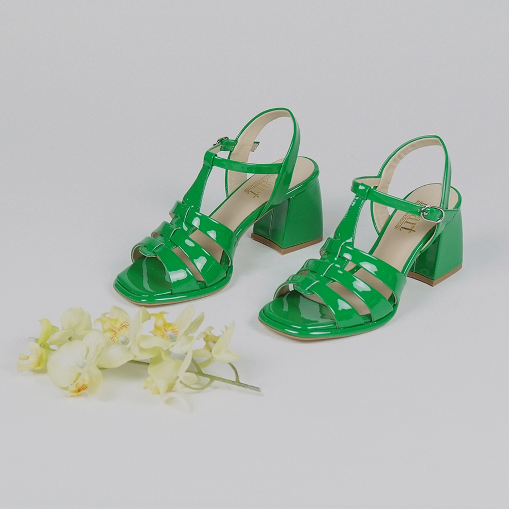 Πέδιλα δερμάτινα με μπαρέτα σε πράσινο και τακούνι 6 cm