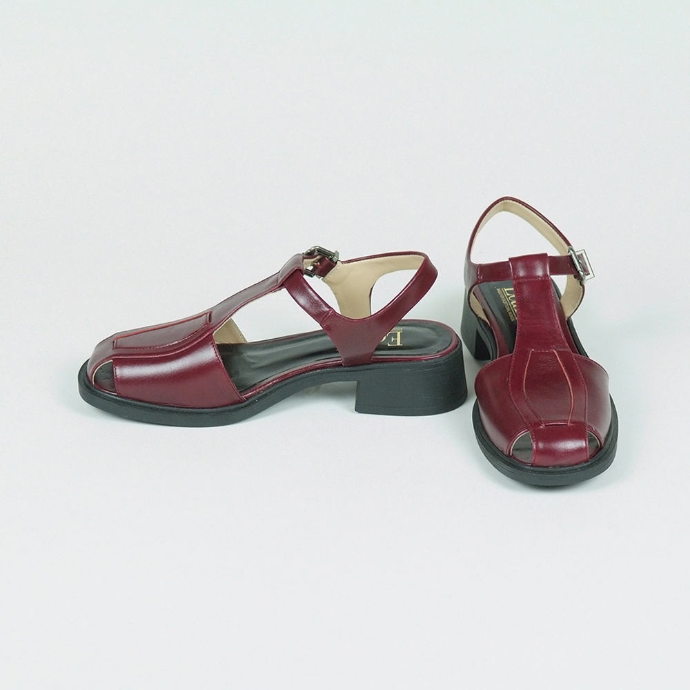 Πέδιλα δερμάτινα φλάτ FISHERMAN σε μπορντό με rubber σόλα