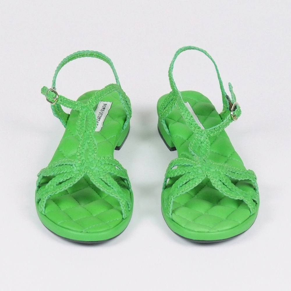 Πέδιλα φλάτ δερμάτινα πλεκτά σε  πράσινο