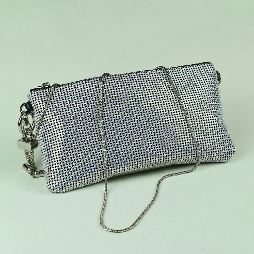 Τσάντα με στράς για βραδινές εμφανίσεις σε ασημί(28Χ15))
