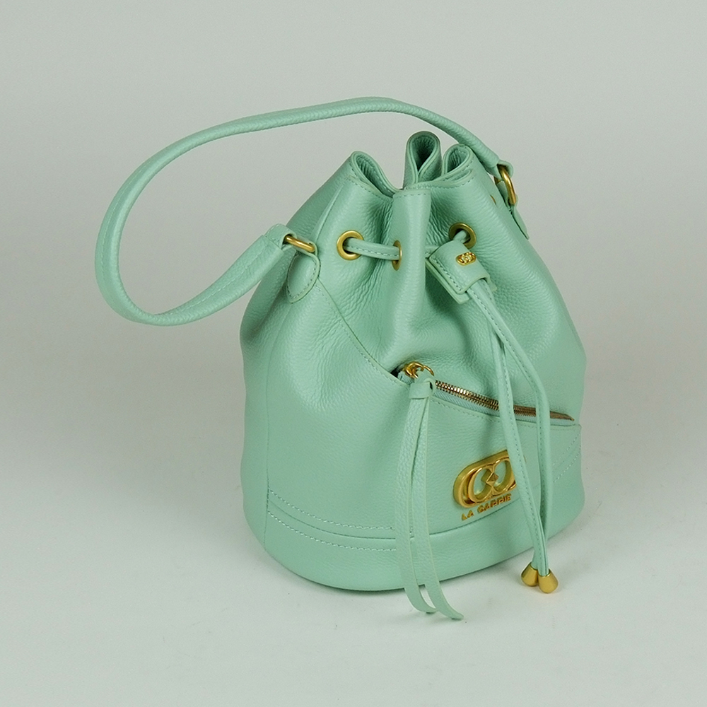 Τσάντα δερμάτινη πουγκί σε πράσινο βεραμάν