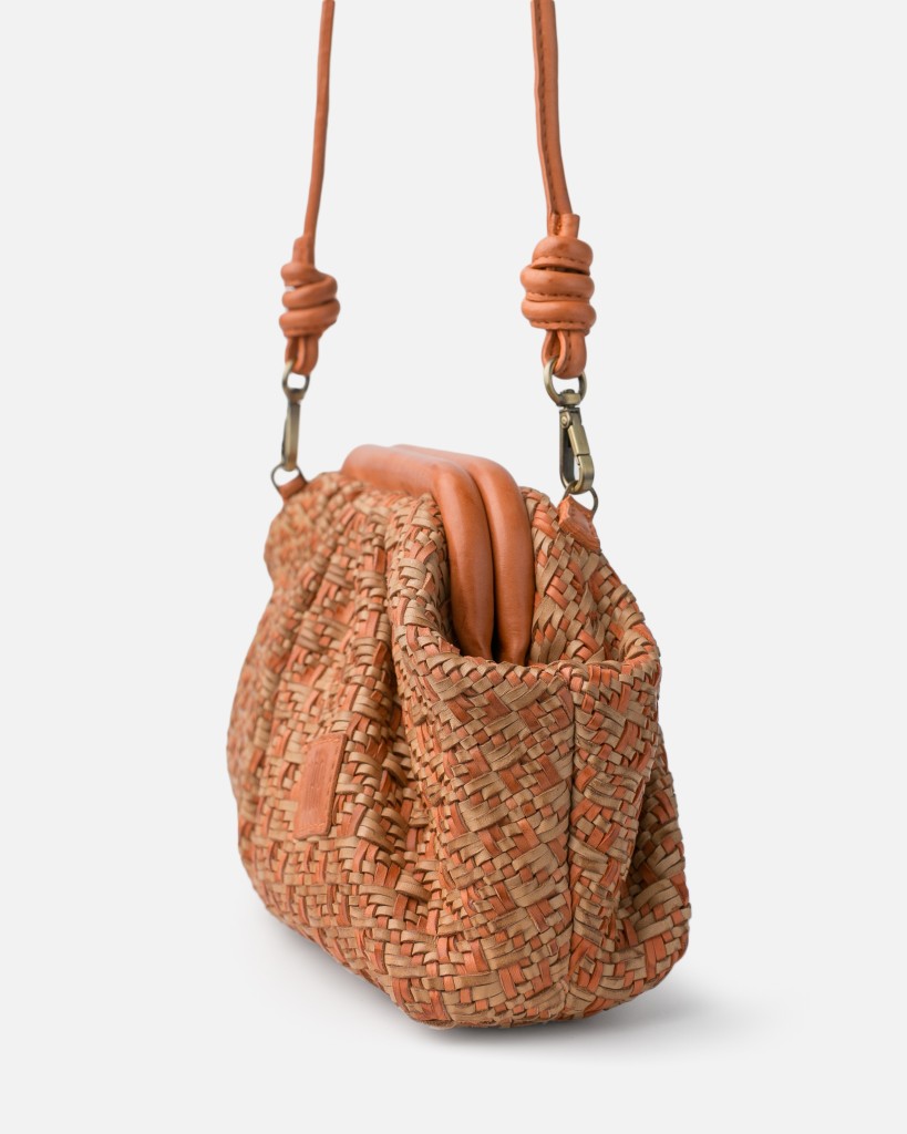 Τσάντα ώμου δερμάτινη πλεκτή σε πορτοκαλί αποχρώσεις