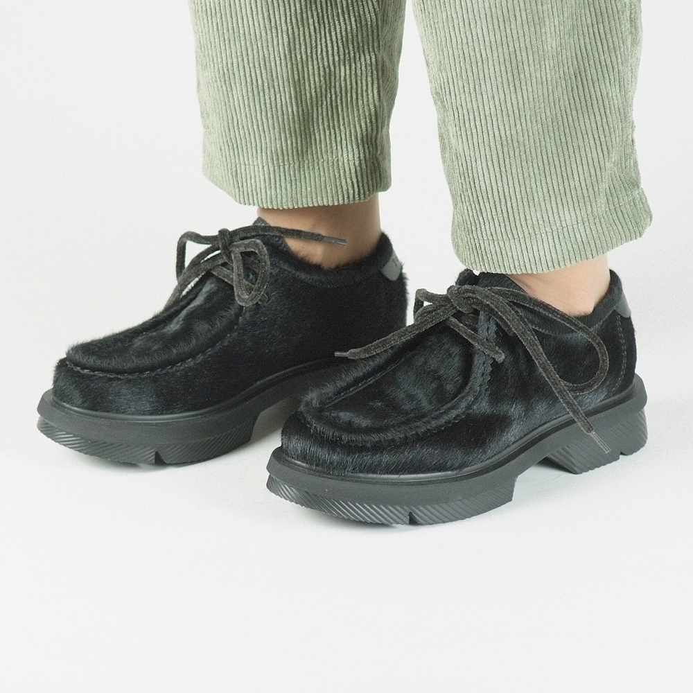 Brogues δερμάτινα pony skin σε μαύρο με σόλα extra light