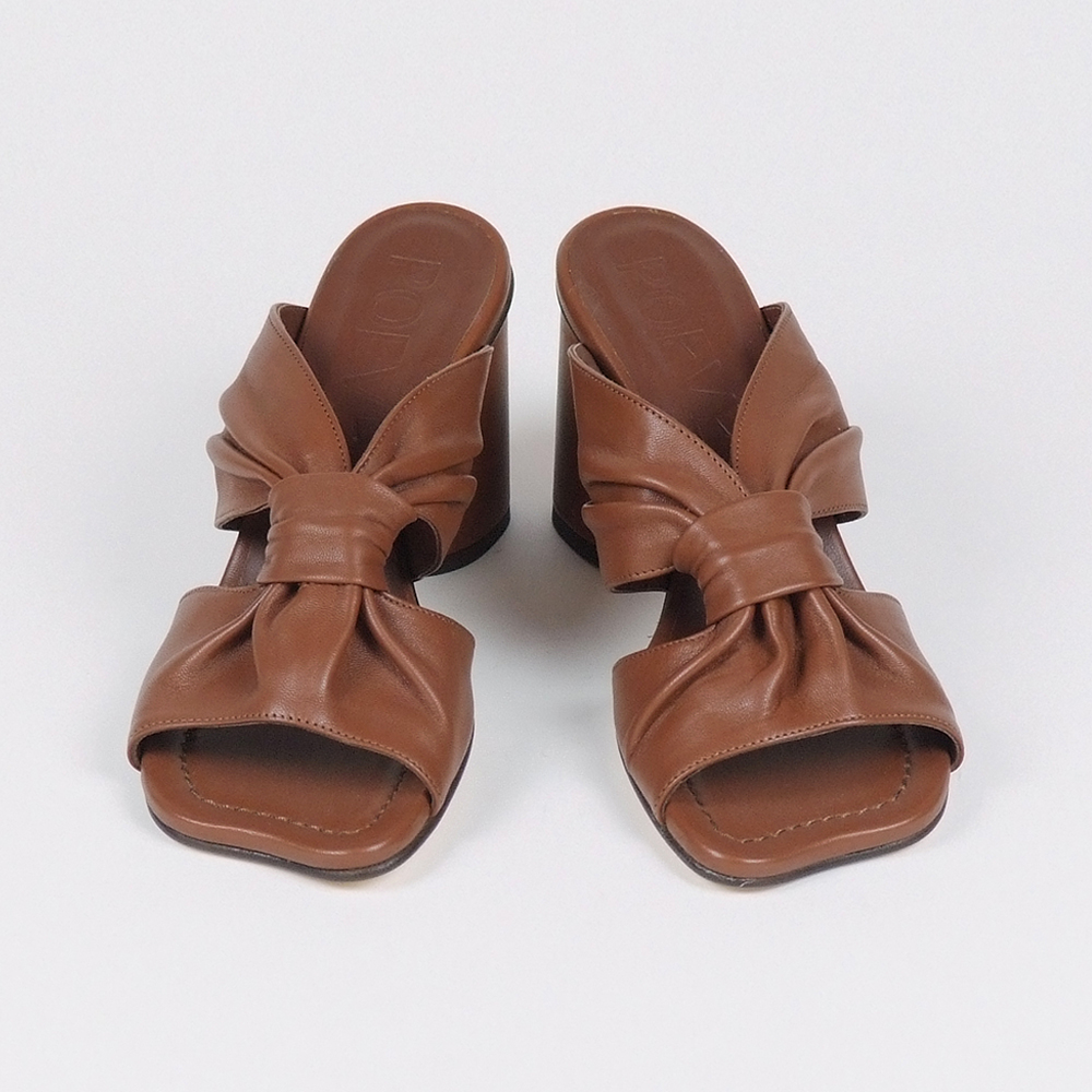 Mules δερμάτινα σε καφέ με τακούνι 6 cm