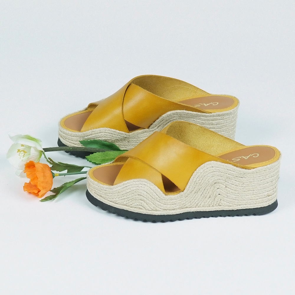 Mules δερμάτινα πλατφόρμα σε κίτρινο με ύψος 5 cm