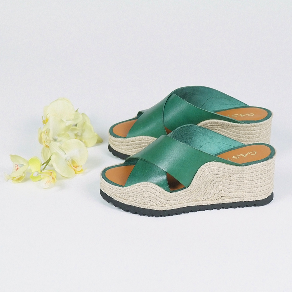 Mules δερμάτινα σε πράσινο με ύψος 5 cm