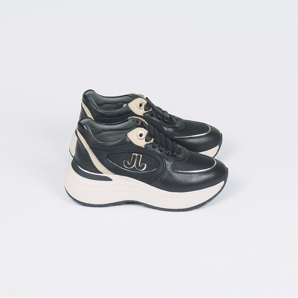 Sneakers δερμάτινα σε μαύρο με λεπτομέρειες χρυσές και άσπρες και σόλα extra light.